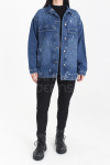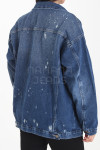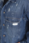 Campera oversize jean rígido azul biostone con roturas.