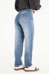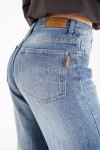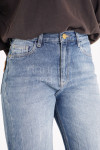 Mom jean rígido acid con quebrado en pierna.