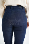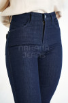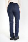 Pantalón recto jean azul estático elastizado, tiro alto.