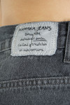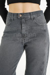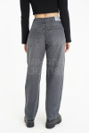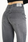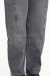 Mom jean rígido gris con recortes en pierna.