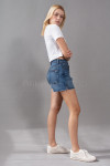 Short relax vintage, fabricado en denim rígido con lavado bio stone, con bigotes y pinzas.