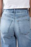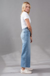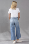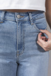 Crop wide leg, fabricado en denim elastizado celeste, con bigotes, tiro alto.