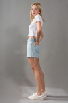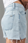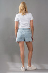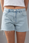 Short relax vintage, fabricado en denim rígido con lavado acid, con bigotes y pinzas.